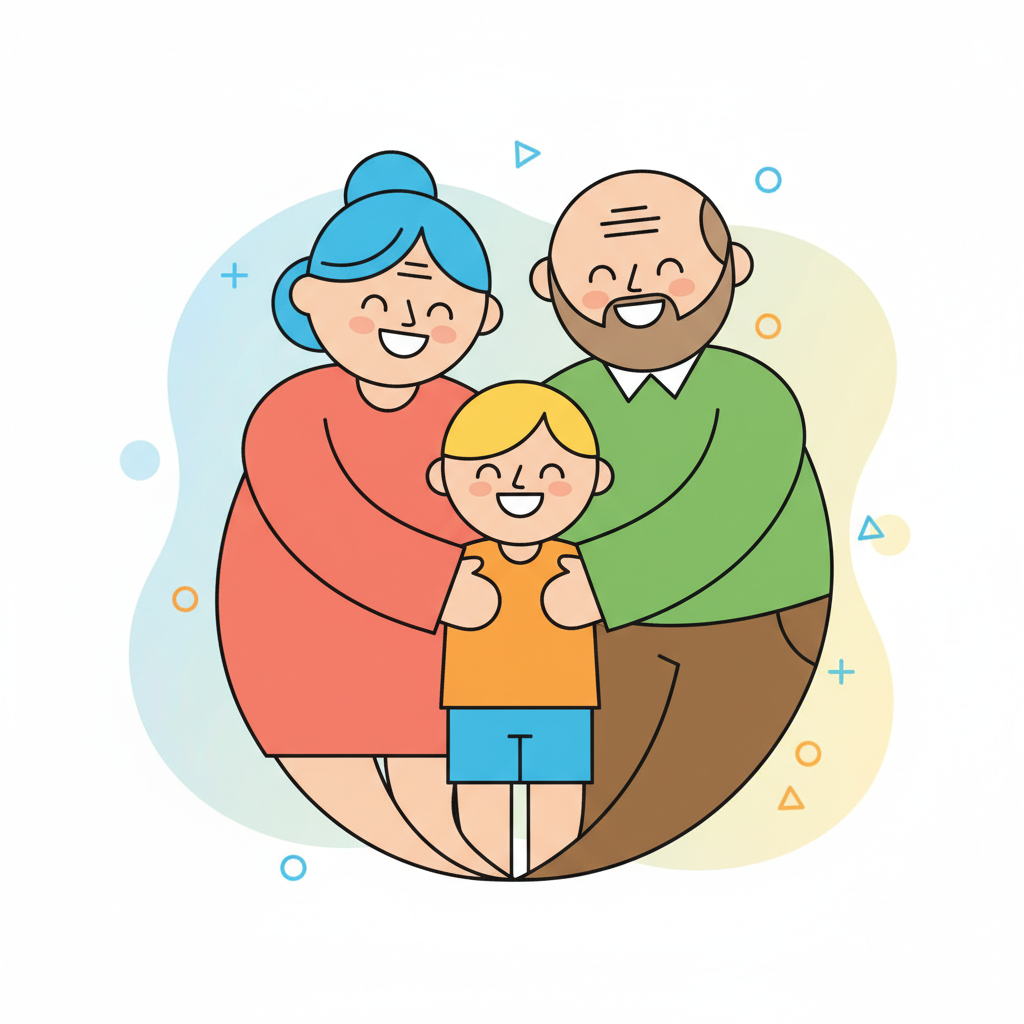 a child hugging grandparents