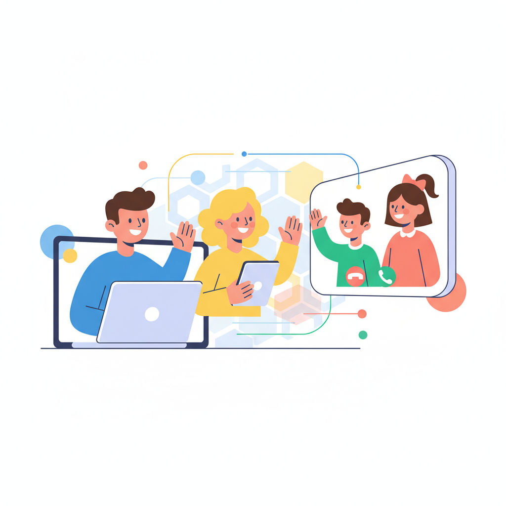 a family talking on a video call